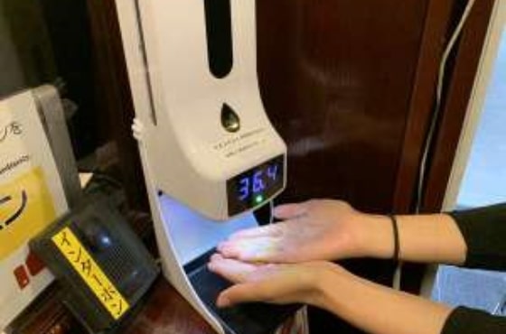 被接触型検温機にて37.5度以上の発熱が確認された場合、念のために脇下を消毒した体温計にて再度検温していただきます。尚、それでも37.5度以上の発熱が確認できた際は客室への御⼊館をお待ちいただき、姶良保健所または帰国者接触者相談センターの指⽰を仰ぎ、その後の対応を決定いたします。