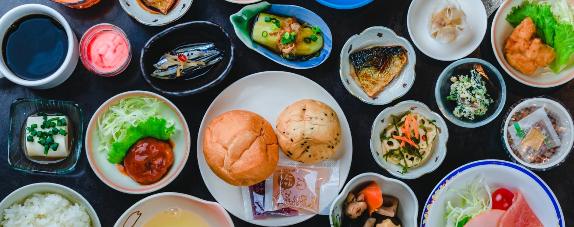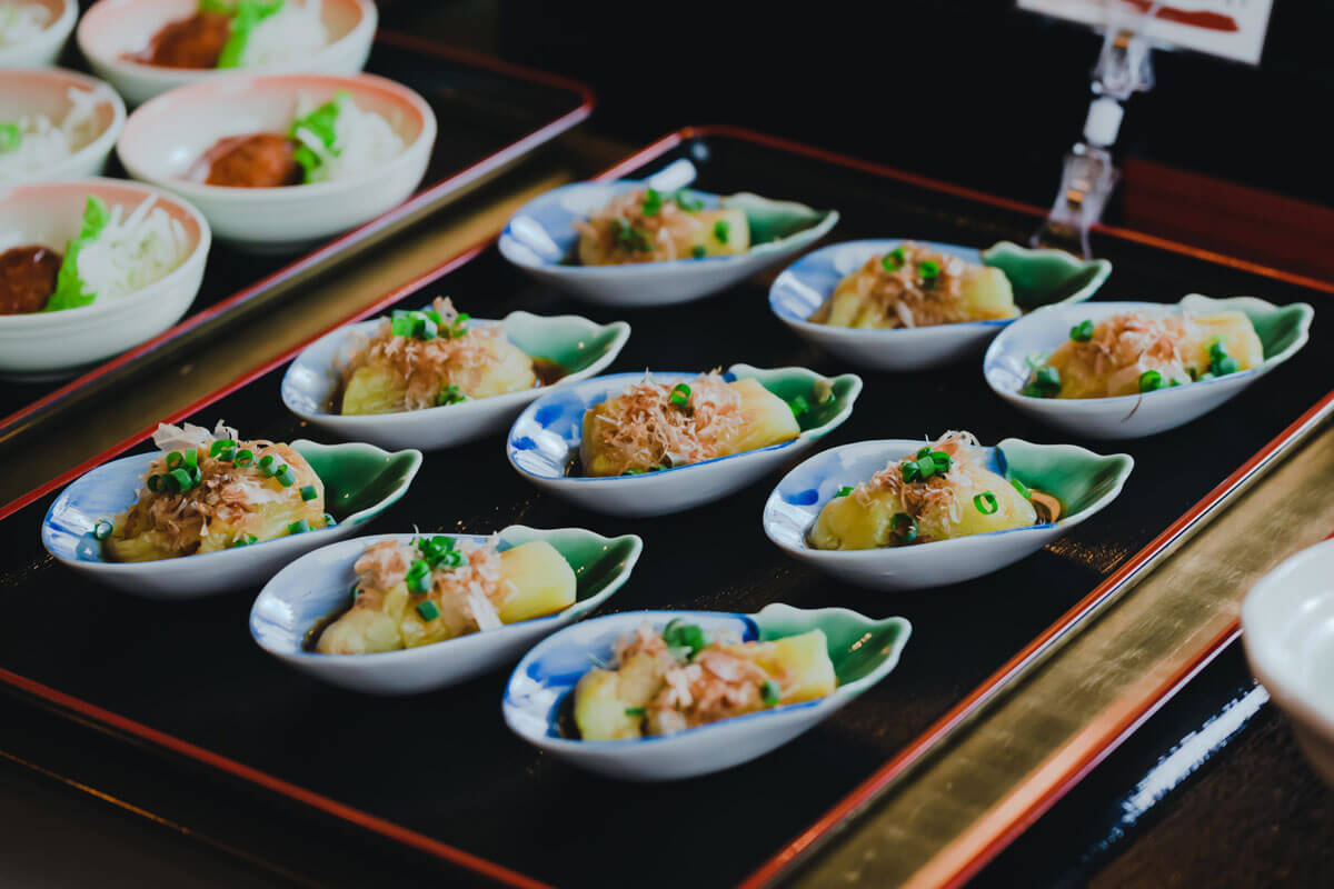 きびなごの甘酢漬けやさつま揚げなど、鹿児島ならではのお料理から、鯖の塩焼き、チキンのマリネ、蓮根の和え物などなど…種類豊富なお料理を、一品一品丁寧に小鉢に盛り付けお出ししております。1日の始まりには、地元を感じる温かい朝食を。