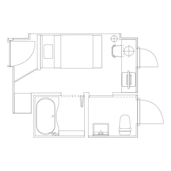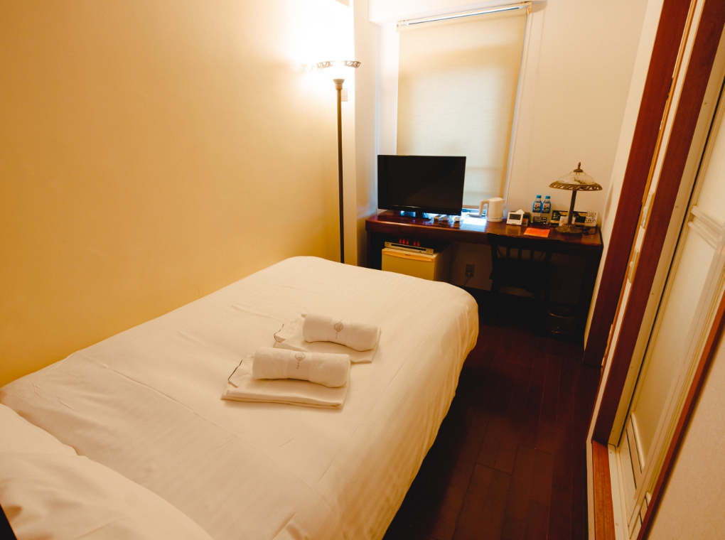 シングルルームと同じ広さのお部屋にセミダブルサイズのベッドを配置しました。バストイレセパレートでゆったりと入浴いただけます。