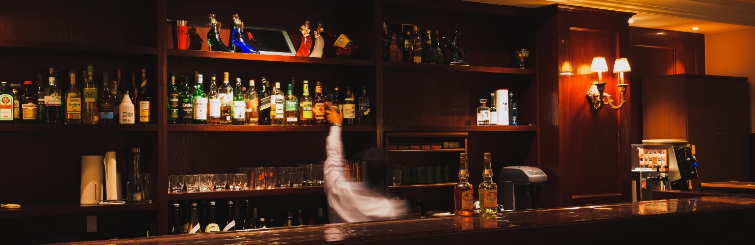夜のラウンジは老舗バーさながらのイイ雰囲気。こだわり抜かれた調度品が、クラシカルな雰囲気を引き立てます。カウンターの奥にずらりと並ぶのは、元バーテンダーである支配人自慢のお酒たち。種類豊富な洋酒や焼酎を揃えてお待ちしております。こだわりのお酒を傾けながら、鹿児島の食をお楽しみください。
