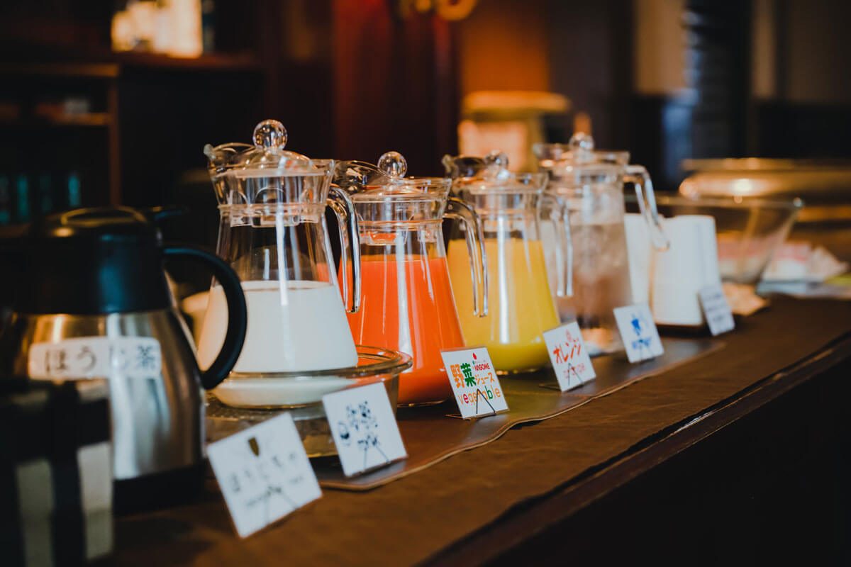 きびなごの甘酢漬けやさつま揚げなど、鹿児島ならではのお料理から、鯖の塩焼き、チキンのマリネ、蓮根の和え物などなど…種類豊富なお料理を、一品一品丁寧に小鉢に盛り付けお出ししております。1日の始まりには、地元を感じる温かい朝食を。
