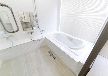 広い浴槽でゆっくりと入浴ができます。お部屋からは桜島を展望できます。気持ちの良い朝日を浴びながら癒しのひとときをお過ごしください。