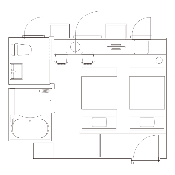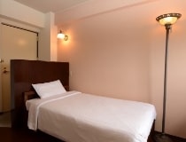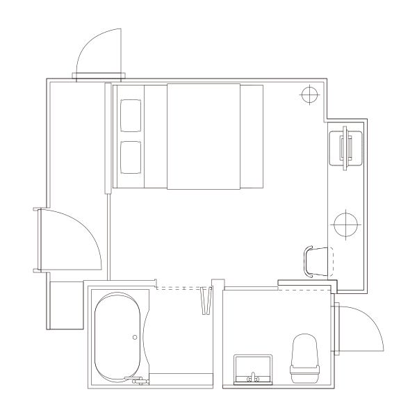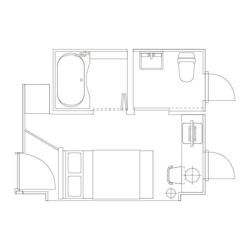 シングルルームと同じ広さのお部屋にセミダブルサイズのベッドを配置しました。バストイレセパレートでゆったりと入浴いただけます。